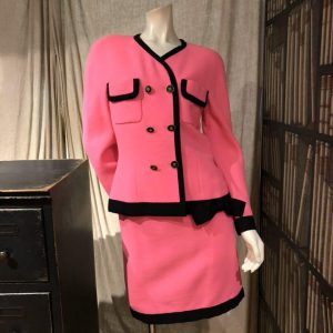 CHANEL【シャネル】ショッキングピンク セットアップを買取致しました。 スカートスタイルのスーツが入荷しました。 ダブルブレストにパイピング、裾にはリボンと、細かいディテールが可愛らしいアイテムです。 発色の良いカラ…