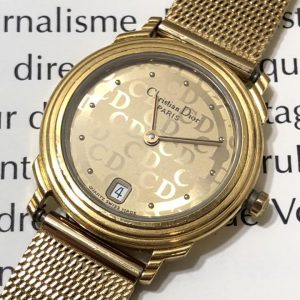 Christian Dior【クリスチャンディオール】カレンダー機能付き腕時計を買取致しました。 ディオールのオールゴールドカラーの腕時計が入荷しました。 文字盤にはCDがうっすらと敷きつめられています。 シンプルながら…